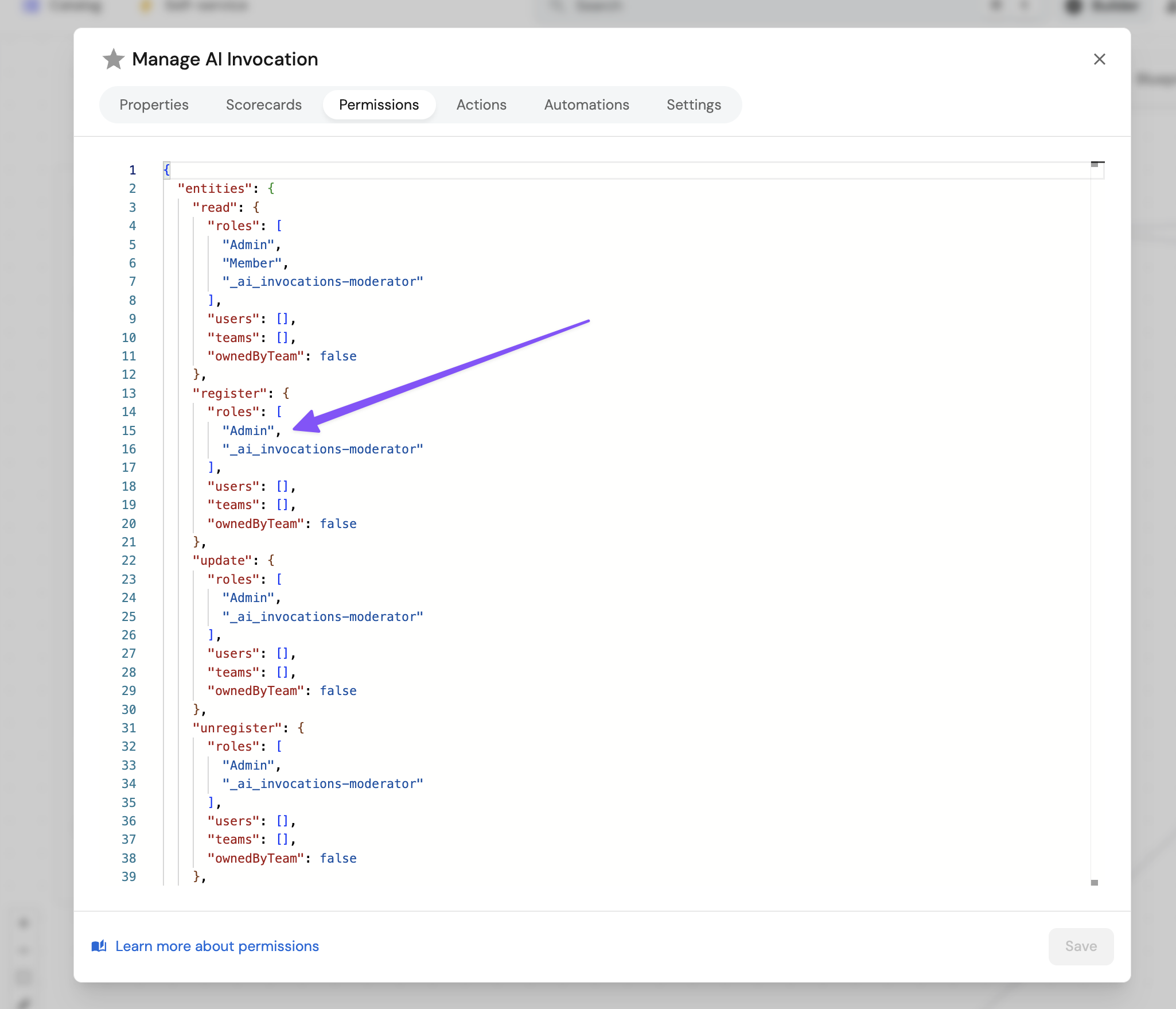 This provides fine-grained control over what actions Port AI can perform - for example, you can restrict it to read-only operations for simple Q&A, or allow only specific actions for automated workflows.