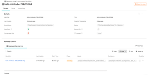 For instance, you can see a Deployment Config and its Pods in a single Port entity page: