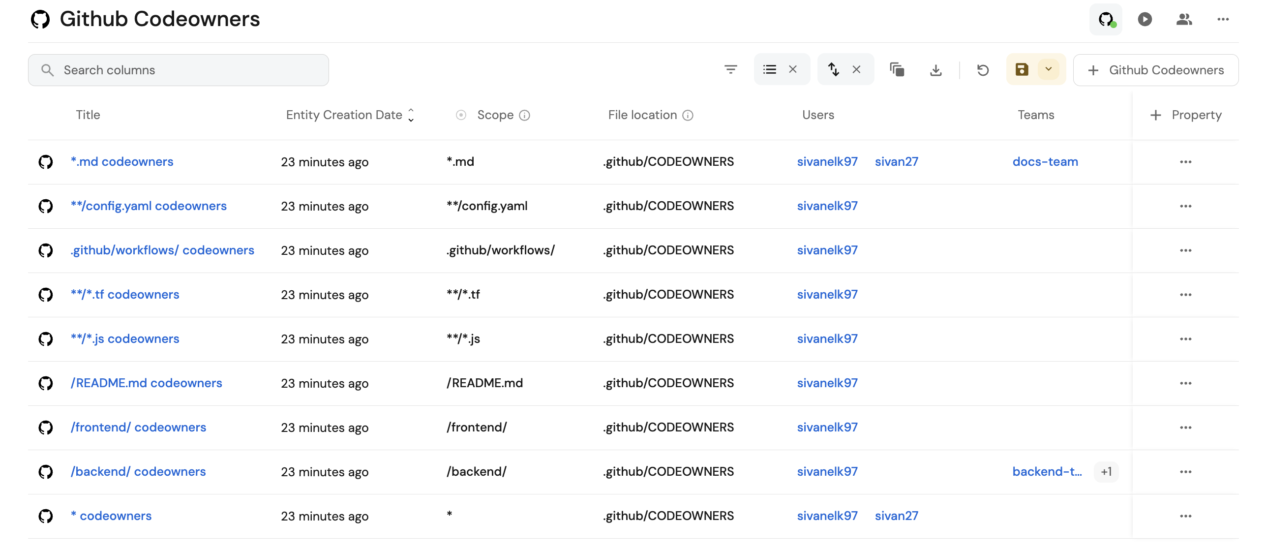 Connect GitHub CODEOWNERS with Service, Team & User